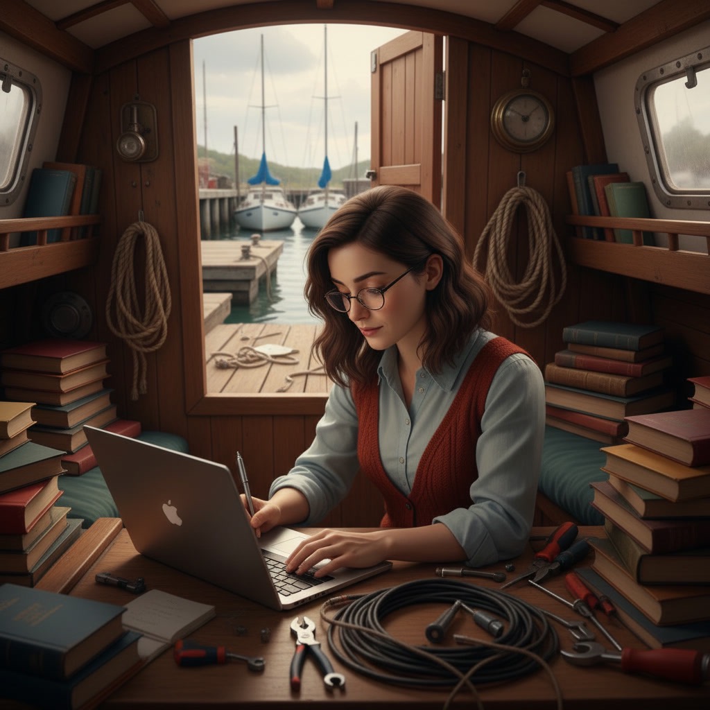 Luckily, I have a room of one’s own. An entire little boat, an old yacht, and she screams (through cracked paintwork) ‘antiquity’, and inspires me daily to never give up. Yet, daily, I do feel like screaming back: “I’ve had enough for the day. Please, just be a boat and a room to write – and not a sieve of rainwater and time!”